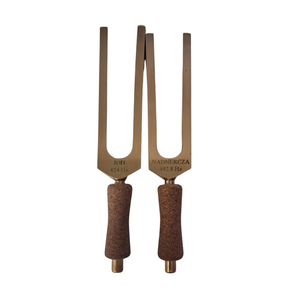 Kamertony Jod 424 Hz i Nadnercza 492,8 Hz - mosiężny zestaw kamertonów do pracy z dźwiękiem, wibracją i świadomą praktyką